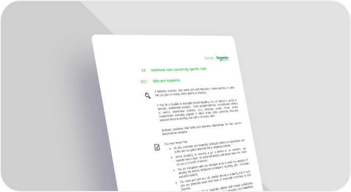 Anti - Corruption Policy – Version 3 – September 2021 6 Internal 2.2 Additional rules concerning specific risks 2.2.1 Gifts and hospitality A business courtesy, also called gifts and hospitality, means anything of value that you give or receive, either directly or indirectly. It may be a tangible or intangible benefit including, but not limited to, goods or services, promotional products, hotel accommodations, entertainment (tickets to events, recreational activities, etc.), company events, meals, drinks, transportation (including upgrade of airline sitting class), gratuities, discounts, personal favors or anything else with a monetary value. Business courtesies help build good business relationships, but they can be interpreted as corruption. You must ensure that : • All gifts, invitations and hospitality packages offered are appropriate and in line with our global and local Gift & Hospitality policies; • Before accepting or receiving a gift, a benefit or an invitation, you consider how it might be perceived publicly and refuse those that might put you in a conflict of interest; • You are transparent with your manager so as to avoid any suspicion of violating the internal declaration procedures regarding gifts, invitations and other benefits; • You never give cash as a gift, whether directly or indirectly, even if such gifts are permitted under local laws or acceptable according to local practices. • You comply with Gift & Hospitality policies and internal authorization process regarding business events, by first contacting your Compliance Officer. Case 1: You are planning to travel abroad to meet with foreign public officials to obtain some legal authorizations. To make sure that the public officials will support your case, you offer him a 6 - bottle wine box and perfume for his wife. Disproportional hospitality and gifts are often linked to obligation or expectation to provide a benefit in return, characterizing bribery or giving the appearance of corruption. Case 2: You participate to a big sales event of one of our partners, and you participate to the contest organized for the event. You win the contest and related price which is a trip for you and your spouse in a dream - like destination. You must refuse and explain our Gift & Hospitality Policy; in parallel, please inform your Compliance Officer and your manager.