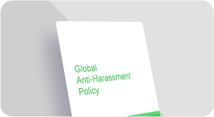 Global Anti-Harassment Policy – Version 2 4 Internal Harassment Harassment is defined as any offensive, inappropriate, unwelcome or even inadvertent behaviors that has the effect of hurting, offending, or upsetting another employee, that sets up an employee to make a mistake, that humiliates or intimidates an employee (“bullying”) or that entails physical or social isolation (“silent treatment”) of an employee. It typically involves the misuse of power; considering that “power” does not always mean being in a position of authority, but can include either personal strength or power to coerce through fear or intimidation. This offensive behavior negatively affects the dignity, psychological or physical integrity of the targeted employee and results in a negative workplace. It may be related but not limited to race, sex, national origin, religion, political opinion, age, medical status, disability, gender, marital status, pregnancy, sexual orientation or gender identity. Either a repeated but also a one-off incident of serious behavior can constitute harassment if this behavior is detrimental and results in any adverse effects for the employee. The Company prohibits any conduct which contributes to an intimidating or offensive workplace and/or interferes with a person’s ability to perform their job. Harassment can take on various forms such as: • Threats, blackmail, coercion • Sabotage of work • Abusive language, verbal or written • Abuse of authority or power Sexual Harassment Sexual harassment means unwelcome sexual conduct (physical, visual, verbal or written) which affects an individual’s dignity and creates an intimidating, hostile or uncomfortable working environment. Sexual harassment can take on various forms such as: • Verbal manifestations: words, advances, propositions or requests for sexual favors. • Written manifestations: sending any type of written communication, including emails or text messages, with unwelcome or offensive sexual requests, inquiries or advances. • Visual manifestations: leering, making sexual gestures, displaying offensive sexually suggestive objects or pictures, cartoons or posters, subtle or explicit demands for sexual favors. • Physical manifestations: unsolicited or unwelcomed actions including touching or assault. Employee 'Employee' shall mean and include any person on the active payroll of the Company including managers and workers, those on deputation, contract, temporary, part time, apprentices, trainees or working as consultants. Definitions