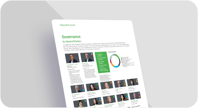 www.se.com Schneider Electric Integrated Report 2021 28 Integrated report Our Board of Directors As of March 29, 2022, the Board of Directors consisted of 15 Directors and 1 Observer. The terms of office of Mr. Willy Kissling and Mrs. Fleur Pellerin who did not ask to be renewed, will end at the Annual General Meeting to be held on May 5, 2022. The appointment as a Director of Mrs. Nive Bhagat who joined the Board as an Observer on February 16, 2022 will be submitted to shareholders on this occasion. As of May 5, 2022, the Board should then be composed of 14 Directors. Jean-Pascal Tricoire Chairman & Chief Executive Officer 58 years, French • Organizes and oversees the Board’s work and reports thereon • Represents the Company in its dealings with third parties, and is vested with the broadest powers to act on behalf of the Company in all circumstances, within the limits of the corporate purpose Fred Kindle Vice-Chairman & Lead Independent Director 62 years, Swiss • Ensures proper governance • Sets the agendas for Board meetings with the Chairman • Meets with shareholders • Chairs the Governance & Remunerations Committee • Chairs the executive sessions • 3 Employee Directors • 75% independent Directors* • 42% women Directors* • 73% non-French Directors • 9 nationalities from 3 continents Board Expertise International markets (13) Corporate finance (12) Public company management (11) Industry knowledge (8) Accounting, audit & risk (5) Sustainability (4) Law, governance, ethics & compliance (4) Digital & Technology (4) Employee perspective and knowledge of the Group (4) Willy R. Kissling Director 77 years, Swiss Linda Knoll Independent Director 61 years, American Cécile Cabanis Independent Director 50 years, French Rita Felix Employee Director 39 years, Portuguese Léo Apotheker Director 68 years, French & German Fleur Pellerin Independent Director 48 years, French Anders Runevad Independent Director 62 years, Swedish Jill Lee Independent Director 58 years, Singaporean Xiaoyun Ma Employee Shareholders Director 58 years, Chinese Anna Ohlsson-Leijon Independent Director 53 years, Swedish Gregory Spierkel Independent Director 65 years, Canadian Lip - Bu Tan Independent Director 62 years, American Bruno Turchet Employee Director 48 years, French Nive Bhagat Observer 50 years, British *Excluding the Director representing the employee shareholders and Directors representing the employees. ** Including joint meeting with other committee. Activities of the Board in 2021 There were 7 meetings (including a Strategy session of 4 half-days) with 97% average attendance. Business & Financial results Ongoing business, Financial statements and information delivered to the market, ESG strategy. Strategy and investment Review of strategic priorities, including during the Strategy session, and authorization of significant acquisitions and disposals (over €250 million) Risks & Compliance Risk mapping, Business continuity plan, Ethics & Compliance framework Corporate governance Composition of the Board and its committees, succession plan for corporate officers, compensation of Corporate officers, Long-term incentive plan, Preparation of the Annual General Meeting Board committees Governance & Remunerations 7 meetings** 6 members 67% independent 94% average attendance Audit & Risks Committee 6 meetings** 5 members 80% independent 100% average attendance Investment Committee 3 meetings** 6 members 80% independent* 89% average attendance Digital Committee 5 meetings** 5 members 75% independent* 100% average attendance Human Resources & CSR Committee 4 meetings** 6 members 75% independent* 100% average attendance Board committees Governance & Remunerations Committee Audit & Risks Committee Investment Committee Digital Committee Human Resources & CSR Committee Committee Chair * The Director representing the employee shareholders and Directors representing the employees are excluded as per the French Commercial Code and AFEP-MEDEF Corporate Governance Code. Governance