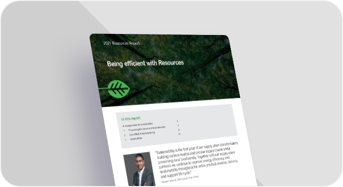 2021 Resources Report Being efficient with Resources In this report A changemaker for sustainability 2 1 Preserving the planet and its biodiversity 4 2 Eco-efficient manufacturing 8 3 Green offers 14 “ Sustainability is the first pillar of our supply chain transformation, building carbon-neutral and circular supply chains whilst preserving local biodiversity. Together with our supply chain partners we continue to improve energy efficiency and sustainability throughout the entire product creation, delivery, and support life cycle.” Mourad Tamoud, Chief Supply Chain Officer Context and goals 2021 came with yet additional evidence of the speed of climate change, resource scarcity, and biodiversity losses. In 2021, “Earth Overshoot Day” fell on July 29, meaning that humanity consumes its natural capital budget of the year. The decline recorded last year has been caught up due to an economic rebound with respect to 2020. Humanity’s common goal is clear: push back the date of overshoot to December 31 and beyond to live within the limits of our one planet. Only by working hand-in-hand will businesses, finance, and governments be able to drive global systemic and transformative change, thus unlocking new opportunities and allowing everyone to live sustainably on a healthy planet. Schneider Electric’s long-term commitment is to be efficient with resources, by protecting and restoring biodiversity and innovating towards circular business models. On biodiversity, Schneider Electric is committed to fast-track the adoption of ambitious biodiversity strategies, leveraging best practices from climate Science-Based Targets: measuring impacts and aligning targets with science. With Schneider Sustainabilty Impact and its concrete programs, the Group innovates towards a more circular economy, in industrial processes, product design, and business model innovation.
