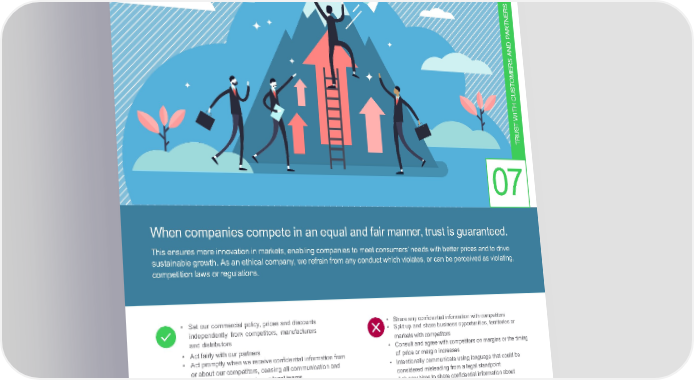 UpholdFairCompetition S ER N T PAR D AN RS E M O T CUS H T WI T S U TR 07 Whencompaniescompeteinanequalandfairmanner,trustisguaranteed. This ensures more innovation in markets, enabling companies to meet consumers’ needs with better prices and to drive sustainable growth. As an ethical company, we refrain from any conduct which violates, or can be perceived as violating, competition laws or regulations. • Set our commercial policy, prices and discounts • Shareanyconfidential information with competitors independently from competitors, manufacturers • Split up and share business opportunities, territories or and distributors marketswithcompetitors • Act fairly with our partners • Consult and agree with competitors on margins or the timing • Act promptly when we receive confidential information from of price or margin increases or about our competitors, ceasing all communication and • Intentionally communicate using language that could be reporting any incidents to our legal teams considered misleading from a legal standpoint • Asknewhirestoshareconfidential information about competitors for whom they used to work • Requestconfidential information from former Schneider employers who currently work for competitors • Encourage customers or suppliers to breach contracts with competitors