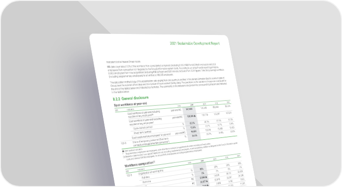 177 Life Is On | Schneider Electric www.se.com 2021 Sustainable Development Report Indicators below have a Group scope. HR data cover about 93% of the workforce from consolidated companies (excluding 6,300 AVEVA and OSIsoft employees and 5,100 employees from companies not integrated to the Group’s information system tools). According to our extra-financial reporting principles, 8,000 employees from new acquisitions (including RIB Software and L&T) are also excluded from 2021 figures. Total Group average workforce (including supplementary employees) for all entities is 166,025 employees. The calculation methodology of the absenteeism rate varying from one country to another, in this domain Schneider Electric communicates at Group level the number of lost days and the number of hours worked (Safety data). The precisions on the variations of scope are contributed at the end of the tables below and indicated by footnotes. The comments on the indicators are given in the corresponding chapters and indicated in the tables below. 8.2.2 General disclosure Spot workforce at year-end GRI Indicators Units 2021 2020 2019 2018 Spot workforce at year-end including supplementary employees* (1) year-end HC 147, 4 6 8 147,349 150,828 151,019 Spot workforce at year-end excluding supplementary employees* year-end HC 128,384 128,770 135,307 137, 5 3 4 Open-ended contract % 87. 2 % 8 7. 3 % 8 7. 3 % 8 7. 2 % Fixed-term contract % 12.8% 12.7% 12.7% 12.8% Spot supplementary employees* at year-end year-end HC 19,084 18,548 15,456 13,480 102-8 Share of temporary personnel (fixed-term contracts and supplementary personnel*) % 24.0% 23.7% 21.6% 20.6% 2021 audited indicators. * Supplementary employees are employees under short-term contracts to supplement short-term activities and work peaks. (1) Based on data tracked in our global TalentLink tool, excluding supplementary employees, recent acquisitions, entities not integrated to the Group’s information system tools and interns (128 384 employees, i.e. around 87% of employees excluding supplementary employees); Workforce composition (1) GRI Indicators Units 2021 2020 2019 2018 102-8 Organization of working time Full-time % 98% 97% 98% 98% Part-time % 2% 3% 2% 2% 401-1 Hires (2) HC 27,18 9 19,536 2 5 ,131 23,228 401-1 Departures (2) HC 22,877 20,840 23,381 24,036 Layoffs HC 7,114 5,626 8 ,19 0 7, 6 8 0 Resignations HC 11,94 4 8,729 10,600 11, 5 9 5 Other (retirement, end of contract, etc.) HC 3,819 6,485 4,591 4,761 401-1 Total employee turnover % 18 .1% 16 .1% 17. 6 % 17. 0 % Voluntary turnover % 9.5% 6.9% 8.0% 8.4% 102-8 Breakdown of workforce by region Asia-Pacific % 31% 32% 35% 32% Western Europe % 27% 27% 26% 27% North America % 26% 24% 20% 22% Rest of the world % 16% 17% 19% 20% 102-8 Breakdown of workforce by country (the most significant countries) United States % 14% 13% 13% 13% France % 11% 12% 11% 11% China % 11% 11% 10% 10% Mexico % 10% 10% 7% 7% India % 8% 10% 10% 10% Germany % 4% 3% 3% 3% Russian Federation % 3% 3% 6% 6% Spain % 3% 3% 3% 3% Indonesia % 3% 3% 3% 3% United Kingdom % 3% 3% 3% 3% Australia % 2% 2% 2% 2%