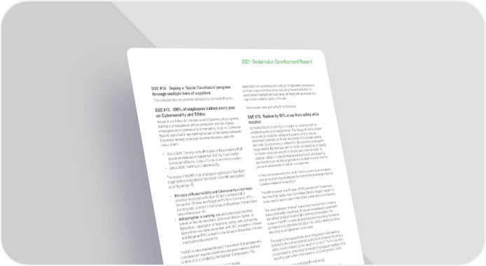 157 Life Is On | Schneider Electric www.se.com 2021 Sustainable Development Report SSE #12: Deploy a ‘Social Excellence’ program through multiple tiers of suppliers This indicator has not yet been deployed by Schneider Electric. SSE #13: 100% of employees trained every year on Cybersecurity and Ethics As per to our Ethics & Compliance and Cybersecurity programs, training of employees on ethics, corruption risks (for eligible employees) and cybersecurity is mandatory. To do so, Schneider Electric launched 3 new trainings as part of the Global Schneider Essentials training campaign reconducted every year with new content: • Since 2018: Training on the Principles of Responsibility (PoR document replaced in September 2021 by Trust Charter Schneider’s Electric Code of Conduct) and Anticorruption. • Since 2020: Training on Cybersecurity. The scope of this KPI is all employees registered in TalentLink (legal entities integrated in Talent Link, Core HR data system) as of November 15: • Principle of Responsibility and Cybersecurity e-learnings: all active employees with Open Ended Contracts (OEC) (exception: Chinese and Bulgarian Fix Term Contracts – FTC – are included), present in the Group on December 31st and hired before December 1st • Anticorruption e-learning : exposed employees identified based on the job description (Schneider Electric System of Reference – description of functions), active, with connectivity type online-corporate credentials, with OEC (exception: Chinese and Bulgarian FTC) present in the Group on December 31st and hired before December 1st This KPI is calculated as followed: the number of employees who completed all required e-learnings assigned based on defined criteria (2 or 3) divided by the number of employees x 100. This indicator was audited by Ernst & Young. SSE #14: 0.38 or below Medical Incident rate Safety is one of the 5 pillars of Schneider Trust Charter, which emphasizes the importance Schneider Electric is placing on its employees, customers, and contractors. Schneider works with many VIP global customers, and they demand the highest standards of Health & Safety management and performance before they engage and continue to do business with Schneider Electric. Moreover, at Schneider Electric our mission is to protect Occupational Health and Safety of employees, customers, contractors, and visitors to our locations. The Group also strives to provide employees safe, pleasant, and efficient workplaces for enhanced wellbeing and effectiveness. As such, we aim to reduce the Medical Incident Rate (MIR) to 0.38 by 2025. The MIR is the number of work incidents requiring medical treatment per million hours worked (i.e. average hours of 500 employees working for one calendar year). Work related injuries and occupational illnesses requiring medical treatment are included. Work incidents may or may not have resulted in time off work. All work-related incidents reported on Schneider Electric sites are counted (including therefore incidents affecting Schneider employees and other employees working under the supervision of Schneider, i.e. temporary workers). All Schneider sites within scope are considered. Medical incidents do not include: visits to a physician or other licensed healthcare professional solely for observation or counselling; the conduct of diagnostic procedures, such as x-rays and blood tests, including the administration of prescription medications used solely for diagnostic purposes (e.g. eye drops to dilate pupils); or first aid. This indicator was audited by Ernst & Young. SSE #15: Reduce by 50% scrap from safety units recalled Schneider Electric’s priority is to delight its customers with an outstanding end-to-end experience. The Group strives to ensure our products’ reliability, safety and cybersecurity to secure customers’ business continuity and protect their people, assets and data. Quality is every customer’s right and every employee’s responsibility. By rationale, with an enhanced emphasis on quality, Schneider products henceforth should have minimal recall. In addition, safety in using Schneider products is of utmost priority and therefore we set this target with the mindset to ensure that our products remain safe for use for our customers. In the unfortunate event of a recall, the Group aims to encourage a circular economy by reusing any parts from the recalled product as possible instead of scrapping it. This KPI is based on all Problem (PRB) opened with Go decision from the Offer Safety Alert Committee (OSAC). Target of weight of scrap need to be included in the OSAC presentation and decision. The used definition of ‘recall’ is a product recalled from Customer sites to Schneider’s premises. Products remediated at customer’s site without physical recall to SE’s premises is excluded. The scope of this KPI includes all physical products sold by Schneider. Software are by definition excluded. Also, safety recalls bound by Non-Disclosure Agreement is excluded. The weight of scrapped materials (in kilograms) is estimated by multiplying the number of physical products scrapped following a safety recall multiplied by the weight of product. The % reduction is calculated by comparing the weight of scrapped materials in the reporting year to that of the baseline (4,202 kilograms in 2020). This indicator was audited by Ernst & Young. SSE #16: In the Top 25% in external ratings for Cybersecurity performance Schneider Electric is continuously and consistently monitoring the security of its digital footprint with the support of cyber scoring agencies and this discipline is applied across the extended ecosystem* (e.g. integrated and non-integrated entities). Our primary scoring agency is BitSight which rates company security maturity between 300 to 820. This rating is calculated in real time with a proprietary algorithm that examines two classes of externally observable data: • configuration information, which repres