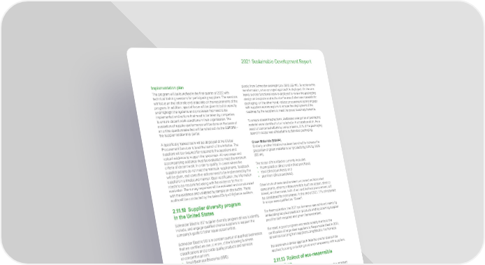 67 Life Is On | Schneider Electric 2021 Sustainable Development Report Implementation plan The program will be launched in the first quarter of 2022 with technical training sessions for participating suppliers. The sessions will focus on the rationale and elaborate on the requirements of the program. In addition, special focus will be given to build capacity and highlight the systems and processes that need to be implemented and actions that need to be taken by companies to ensure decent work conditions in their organization. The evaluation of supplier performance will be done on the basis of an online questionnaire that will be rolled out via the SSPSRM – the supplier relationship portal. A specifically trained team will be deployed at the Global Procurement Services to lead the launch of the initiative. The suppliers will be required for respond to the questions and upload evidence to support the responses. All responses and accompanying evidence must be evaluated to meet the minimum criteria of decent work, in order to qualify. In cases where the supplier actions do not meet the minimum requirements, feedback will be given, and corrective actions need to be implemented by the suppliers in a timebound manner. Upon rectification, the information needs to be resubmitted along with the evidence for the re- evaluation. The survey responses will be evaluated and corroborated with the evidence and validated by sample on-site audits. These audits will be conducted by the trained Duty of Vigilance auditors. 2.11.10 Su pplier diversity program in the United States Schneider Electric US’ supplier diversity program strives to identify, include, and engage qualified diverse suppliers to support the company’s goals to foster equal opportunities. Schneider Electric US is in constant pursuit of qualified businesses that are certified as one, or more, of the following business classifications and provide quality products and services at competitive prices: • S mall Business Enterprise (SBE); • V eteran (VET); • M inority-Owned Enterprise (MBE); • W omen-Owned Enterprise (WBE); • H istorically Underutilized Business Zones (HUBZone). As of end of December 2021, 19,3% of Schneider Electric US’ suppliers were diverse, aiming to demonstrate year to year improvement i n u tilization o f diversely o wned b usinesses. 2.11.11 The Z ero C arbon P roj ect Schneider adopted a very ambitious target for 2050: to operate a ne t-zero c arbon em ission s upply c hain, me aning t hat all Schneider f actories a nd transportation, a nd t hat o f it s suppliers in t he en tire u pstream v alue c hain wo uld b e o perating w ithout using any fossil fuel and run only on clean energy. To achieve this ambitious target of 2050, as the first st ep, Schneider has launched The Zero Carbon Project, which aims at redu cing 50% of operational carbon emissions from its top 1,000 suppliers by 2025. 2.11.12 Green materials and sustainable p a ckaging Sustainable P ackaging ( SSI # 5) Resource e fficiency a nd c on servation a re the u nderlying pr inciples that g uide a ll ac tions a t S chn eider. D urin g t he p eriod o f 2 018 – 2020 the Company implemented an initiative to successfully move to 99% of cardboard and pallets used in the transport of goods to be sourced from recycled or certified sources. In 2021, this ambition was extended to use recycled cardboard in all primary and secondary packaging and remove all single use www.se.com plastic from Schneider packaging by 2025 (SSI #5). To achieve this transformation, a two-pronged approach is deployed. On the one hand, a cross functional team is deployed to review the packaging design and explore and authorize the use of alternate materials for packaging; on the other hand, various procurement teams engage with suppliers across regions to ensure the deployment of the roadmap by the suppliers to meet the prescribed requirements. To ensure streamlined actions, dedicated categories of packaging material were identified to be included in the transformation. As a result of concerted efforts by various teams, 21% of the packaging spend in scope was attributed to sustainable packaging. Green Materials (SSI #4) Similarly, another initiative has been launched to increase the proportion of green material in our products by 50% by 2025 (SSI #4). The scope of this initiative currently includes: • t hermoplastics (direct and indirect purchase); • s teel (direct purchase); and • al uminum (direct purchase). Other kinds of materials like steel purchased as fabricated components, other non-ferrous metals (such as copper, silver or brass), and thermoset, both direct and indirect procurement, will be considered for next phases. At the end of 2021, 11% of materials in scope were qualified as “Green”. For thermoplastics, the 2021 performance was achieved mainly by embedding recycled plastics in products and by obtaining supplier proof for both recycled and green flame retardant. For steel, a good progress was made notably thanks to the certification of large steel suppliers to Responsible Steel in 2021, as well as sourcing from suppliers using Electric Arc Furnace. For aluminum a similar approach than the one for steel will be applied, focusing on building trust and transparency with suppliers. 2.11.13 R ollout of eco-responsible initiatives Schneider Electric is rolling out several eco-responsible initiatives with its suppliers. For example, Schneider has chosen to go further than the European REACH and RoHS regulations. The approach is rolled out in the Group over the whole product portfolio and to all suppliers, regardless of their geographic origin. To support the REACH and RoHS projects, Schneider has implemented a data collection process supported by a dedicated team to gather the required information from its suppliers. This has allowed it to significantly reduce its response time to collect such information and therefore be quicker to respond to its customers’