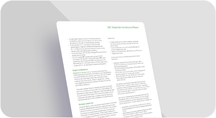 25 Life Is On | Schneider Electric www.se.com 2021 Sustainable Development Report • It is particularly heavily involved in the working group on sustainability (chairing environment and circular economy groups) and in the work on the rational use of energy. • It chairs the IEC TC111 Committee on Environmental standardization of Electric and Electronic Equipment and IEC TC 23 Electrical Accessories (protection devices, wiring devices, home and building control systems). • It is the secretary of IEC SC23K on Energy Efficiency Products, Systems and Solutions. • In 2018 it led the UPS manufacturers’ group in the EU Commission’s Product Environmental Footprint (PEF) pilots for defining rules to assess the PEF of products put on the EU market, prior to its implementation of the European policy. • It chairs ISO TC 184 (Automation systems and integration). Digital transformation Digitization is the key driver for the advanced manufacturing, optimizing the production with more flexibility, more interoperability, more predictability, and continuity, providing a new level of system efficiency and sustainability. More data, software and tools enabling virtual descriptions, defined in digital twins, creating new capabilities and services combined with Machine learning and Artificial Intelligence. That’s why Schneider Electric is strongly involved in ISO and IEC technical committees, and association like Industrial Digital Twin Association to deep dive and deploy the Asset Administration Shell through industrial Use Cases of the standardized digital twin and in Universal Automation.Org, to address a more functional and distributed approach for the orchestration of industrial systems. National committees Schneider Electric chairs many French standardization committees hosted by AFNOR (French standards organization) and in other national committees, such as the chair of the French and Swedish Committees for environmental standardization and the French Committee on Circular Economy. It was a major contributor to smart manufacturing initiatives such as the AIF in France. Notably, it is a member of the Council Board and of the IEC Conformity Assessment Board. 1.6 Main ESG risks and opportunities 1.6.1 Evaluation methodology As part of its Extra-Financial Performance Declaration, the Group presents the main risks and opportunities identified with respect to major societal challenges in this section. In order to compile the list of main extra-financial risks for the Group, a panel of both internal and external tools is used to address the expectations of its stakeholders as best as possible. The Group Sustainability team leads the evaluation, working in close collaboration with the Group Risk Management function and with the Duty of Vigilance Committee. The Group’s corporate governance bodies supervise the development of internal control and risk management systems. The Audit & Risks Committee has particular responsibility for following up on the efficiency of internal control and risk management systems and reports to the Board of Directors. Internal tools: • A regular stakeholder consultation (materiality assessment and matrix), at least once every three years (last exercise done in 2020); • The Group risk matrix, led by the Group Risk Management function, updated every year; • Specific committees (Carbon, Human Resources, Ethics, etc.); • Vigilance risks matrix. Continuous monitoring of external signals and international frameworks: • Regulatory framework: the key topics listed under Article R. 225-105 of the French Commercial Code (Extra-Financial Performance Declaration); • International institutions/organizations (United Nations Global Compact and SDGs); • Environment, Social, and Governance (ESG) rating agencies; • Specific requests from investors and customers; • Recommendations from the Task Force on Climate-related Financial Disclosures (TCFD), and various frameworks (SASB, GRI, etc.). The analysis covers the entire value chain of the Group and its stakeholders: suppliers and subcontractors, transactions, customers, as well as Schneider Electric’s scope – extending to the activities at its Foundation – on cross-functional, environmental, social, and societal topics, human rights, and anti-corruption, with a double materiality approach. Each topic is monitored by the relevant departments and their management teams, or “Risk Overseers”, who are in charge of proper risk assessments and the implementation of mitigation and prevention actions. The main departments and managers are: • Sustainability, Access to Energy, and Environment, and the Global Sustainability SVP and Chief Strategy & Sustainability Officer; • Human Resources and the Chief Human Resources Officer; • Procurement and the Chief Procurement Officer; • Governance, Safety, and Ethics, and the Chief Compliance Officer and Chief Governance Officer. The main identified risks are quantified on probability of occurrence and magnitude of impact by these departments to determine gross risks, and an assessment of current mitigation measures informs on potential net impacts. Extra-financial risks presented here are gross risks, i.e., absolute risks before a mitigation plan is implemented. On this basis, the list of extra-financial risks is reviewed and validated by relevant SVPs, the Board of Directors’ secretariat, Internal Audit team, Group Risk Management function and presented to the Human Resources & CSR Committee and to the Group Sustainability Committee at least every 3 years, in coherence with the SSI calendar. Seven main risk categories were identified and are presented in detail in the following pages: • Business conduct • Corporate governance • Cybersecurity and data privacy • Environment • Product, projects, system quality and offer reliability • Human rights • Responsible workplace • Talent development and competencies