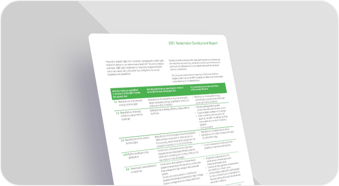 161 Life Is On | Schneider Electric www.se.com 2021 Sustainable Development Report Taxonomy eligible OpEx KPI numerator corresponds to R&D OpEx related to assets or processes associated with Taxonomy-eligible activities. R&D OpEx dedicated to Taxonomy-eligible activities were calculated using allocation key of eligible turnover per business and operations. Double-counting between offer approach (by nature of technology) and segment approach (by nature of customers and infrastructure built such as renewable and low-carbon transport) are removed before consolidation. The Group provides below a mapping of Schneider activities eligible under the current EU Taxonomy in order to provide a better understanding for its stakeholders. Activity name as specified in Annex 1 of the EU Climate Delegated Act Activity definition as specified in Annex 1 of the EU Climate Delegated Act Corresponding business activities of Schneider Electric 3.1 Manufacture of renewable energy technologies Manufacture of renewable energy technologies, where renewable energy is defined in Article 2(1) of Directive (EU) 2018/2001. • Manufacture of renewable energy technologies, equipping wind and solar power generation capacities 3.5 Manufacture of energy efficiency equipment for buildings Manufacture of energy efficiency equipment for buildings. • Building management systems (except fire safety and access control) • Power metering systems for buildings • Smart monitoring and regulation of electricity or heat in buildings, such as thermostats and controls for lighting systems • Cooling systems 3.6 Manufacture of low carbon technologies Manufacture of technologies aimed at substantial GHG emission reductions in other sectors of the economy, where those technologies are not covered in activities 3.1 to 3.5 of the Annex. • Manufacture of variable speed drives • Manufacture of medium voltage switchgear SF 6 -free technology 4 .15 District heating/cooling distribution Construction, refurbishment and operation of pipelines and associated infrastructure for distribution of heating and cooling, ending at the sub-station or heat exchanger. • Control, measurement and supervision systems for heat and cold networks 4.9 Transmission and distribution of electricity Construction and operation of transmission systems that transport the electricity on the extra high-voltage and high-voltage interconnected system. Construction and operation of distribution systems that transport electricity on high-voltage, medium-voltage and low-voltage distribution systems. • Equipment and projects for the construction of transmission and distribution infrastructure • Services for the operation of transmission and distribution infrastructure • Communication and control technologies for the controllability and observability of the electricity system, such as advanced automation software 6 .15 Infrastructure enabling low- carbon road transport and public transport Construction, modernization, maintenance and operation of infrastructure that is required for zero tailpipe CO 2 operation of zero-emissions road transport, as well as infrastructure dedicated to transshipment, and infrastructure required for operating urban transport. • Electric vehicles charging stations and supporting grid reinforcement technologies • Electrical infrastructure for urban and suburban public transport 6 .16 Infrastructure enabling low- carbon water transport Construction, modernization, operation and maintenance of infrastructure that is required for zero tailpipe CO 2 operation of vessels or the port’s own operations, as well as infrastructure dedicated to transshipment. • Port infrastructure for shore-side electrical power to vessels at berth and electrification and efficiency of ports’ operations 7. 5 Installation, maintenance and repair of instruments and devices for measuring, regulation and controlling energy performance of buildings Installation, maintenance and repair of instruments and devices for measuring, regulation and controlling energy performance of buildings. • Service plans related to building management and power metering systems in buildings 9.3 Professional services related to energy performance of buildings Professional services related to energy performance of buildings. • Technical consultations such as energy audits, simulations and trainings • Energy management services • Energy performance contracts