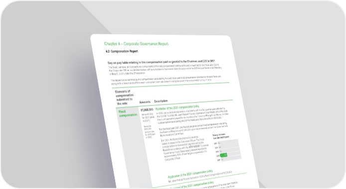 www.se.com Schneider Electric Universal Registration Document 2021 316 Chapter 4 – Corporate Governance Report Say on pay table relating to the compensation paid or granted to the Chairman and CEO in 2021 The fixed, variable, and exceptional components of the total compensation and benefits paid or awarded for the fiscal year 2021 to the Corporate Officer, as detailed below, will be submitted to the shareholders for approval at the 2022 Annual Shareholders’ Meeting of May 5, 2022 under the 8 th resolution. The tables below summarize the compensation paid during the past fiscal year and compensation awarded for the past fiscal year, along with a description of how each component was calculated in compliance with the compensation policy in force. Elements of compensation submitted to the vote Amounts Description Fixed compensation €1,000,000 (amount due for 2021 paid in 2021) Reminder: €875,000 (amount due for 2020 paid in 2020) Reminder of the 2021 compensation policy In 2020, as a practical expression of solidarity with the Group employees affected by the COVID-19 crisis, Mr. Jean-Pascal Tricoire volunteered to contribute 25% of his 2020 fixed compensation payed for six months to the Tomorrow Rising Fund. Hence, his fixed compensation paid during and for the fiscal year 2020 amounted to €875,000. For the fiscal year 2021, his theoretical gross annual fixed compensation was set by the Board of Directors at €1,000,000 upon recommendation from the Governance & Remunerations Committee. For 2021, the Board decided not to award a salary increase to the Corporate Officer. The fixed compensation is reviewed at long intervals by the Board in accordance with the AFEP-MEDEF Corporate Governance Code. Base salary element represents approximately 20% of total target compensation for Corporate Officer. 5% Salary increase over the last 5 years Nil Nil Nil Nil 2021 2017 2018 2019 2020 Application of the 2021 compensation policy Mr. Jean-Pascal Tricoire received in 2021 a fixed compensation of €1,000,000. Annual variable compensation €1,990,300 (amount due for 2021 to be paid in 2022) Reminder: €1,048,775 (amount due for 2020 paid in 2021) Reminder of the 2021 compensation policy The annual variable compensation rewards achievement of the short-term financial, and sustainability (corporate and social responsibility) objectives of the Group. The pay-out opportunity is as follows: • at threshold performance: 0% of the fixed compensation; • at target: 130% of the fixed compensation; • at maximum over-performance: 260% of the fixed compensation. The payment of the variable annual cash compensation is conditional upon approval by shareholders of the compensation granted to the concerned Corporate Officer. The structure of the 2021 Annual variable compensation focuses on what matters to Schneider Electric in delivering value to shareholders. 100% of the variable compensation depends on measurable objectives: • 80% depends on Financial criteria which closely align pay outcomes for the Corporate Officer to Schneider Electric’s financial performance: − organic sales growth (40%), − adjusted EBITA margin improvement (30%), and − cash conversion rate (10%); • 20% depends on Schneider Sustainability Impact (SSI) highlighting the importance of sustainability on Schneider Electric’s business agenda. The Board also ensured that stringent targets were set for the annual variable compensation with maximum award only payable if a strong performance is delivered on each performance metric. 4.2 Compensation Report