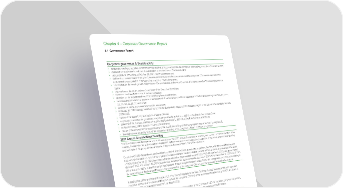 www.se.com Schneider Electric Universal Registration Document 2021 300 Chapter 4 – Corporate Governance Report Corporate governance & Sustainability • deliberation on the composition of its membership and that of its committees and the principle of balanced representation of men and women; • deliberation on whether to maintain the unification of the functions of Chairman & CEO; • deliberation, at its meeting of October 26, 2021, on its self assessment; • deliberation on and review of the principles and criteria relating to the compensation of the Corporate Officers and approval of the compensation and benefits of all types that may be or have been granted; • information on the meetings with major shareholders conducted by the Vice-Chairman & Lead Independent Director on governance topics; • information on the salary review of members of the Executive Committee; • review of the Group’s Diversity & Inclusion program; • decision on the implementation of the 2021 Long-term incentive plan; • recorded the calculation of the level of achievement of performance conditions applicable to Performance Share plans n° 30, 31, 31bis, 32, 33, 34, 35, 36, 37, and 37bis; • decision of capital increases reserved for employees; • reviewed the CSR strategy, results of the Schneider Sustanability Impacts 2018-2020 and targets of the Schneider Sustanability Impacts 2021-2025 ; • review of the opportunity to introduce a Say on Climate; • approval of the corporate governance report as provided for in Article L. 225-37 of the French Commercial Code; • approval of the management report as provided for in Article L. 225-100 of the French Commercial Code; • review of the regulated agreements and commitments; • review of the assessment process relating to the qualification of the related party agreements as “current” or “regulated”; • thorough review, as every year, of the succession planning of the Corporate Officers and top management. 2021 Annual Shareholders’ Meeting The Board approved the agenda and draft resolutions of the 2021 Annual Shareholders’ Meeting, and its report to the shareholders at the meeting. It was informed of the positions expressed by the shareholders met during the preparation of the Annual Shareholders’ Meeting and took note of the proxy-advisors’ reports. It approved the responses to the written questions. Due to the COVID-19 pandemic, and in order to protect all shareholders, guests, and organizers, the Annual Shareholders’ Meeting was held behind closed doors, without the physical attendance of shareholders and other persons entitled to attend, in pursuance of the order n° 2020-321 of March 25, 2020 (as extended and amended by governmental order n° 2020-1497 of December 2, 2020), and governmental decree n° 2020-418 of April 10, 2020 (as extended and amended by governmental decrees n° 2020-1614 of December 18, 2020 and n° 2021- 255 of March 9, 2021), at the Company’s headquarters. It approved all resolutions supported by the management, including those relating to the composition of the Board of Directors, the compensation of the Corporate Officers, and the renewal of financial authorizations. In application of the provisions of Article 1.C.3 of the internal regulations, the Vice-Chairman & Lead Independent Director convenes executive sessions of the Board of Directors (without the Corporate Officers) at the end of each Board meeting. In 2021, the Board of Directors held five “executive sessions”, vs. three in 2020. In addition, when the Board debated and determined the compensation of the Chairman & CEO, the interested party was not present, as prescribed by Article 10.2 of the internal regulations, unless solicited to provide information on specific issues. 4.1.4 Operating procedures and activities of the Board committees In its internal regulations, the Board defined the functions, missions, and resources of its five study committees: the Audit & Risks Committee, the Governance & Remunerations Committee, the Human Resources & CSR Committee, the Investment Committee, and the Digital Committee. Committee members are appointed by the Board of Directors on the proposal of the Governance & Remunerations Committee. Committees may open their meetings to the other Board members. The Vice-Chairman & Lead Independent Director may attend any meetings of committees of which he is not a member. The committees may commission research from external consultants after having consulted with the Chairman of the Board of Directors. They may invite anybody they wish to meetings, as necessary. Secretaries of the Board committees organize and prepare the work of the committees. They draft the minutes for the meetings of the committees which, after their approval, are sent to all members of the Board of Directors. The secretaries of the committees are members of Group management teams and specialists in the subject matters of each committee. 4.1 Governance Report