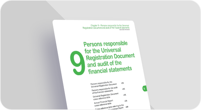 473 Life Is On | Schneider Electric www.se.com Chapter 9 – Persons responsible for the Universal Registration Document and audit of the financial statements Shareholder Information 9. Persons responsible for the Universal Registration Document 474 Persons responsible for the audit of the financial statements 475 Universal Registration Document cross-reference table 476 Annual Financial Report cross-reference table 479 Cross-reference table referring to the elements of the Management Report 480 Cross-reference table referring to the elements of the Corporate Governance Report 481 Cross-reference table pursuant to Articles L. 225-102-1, L. 22-10-36 and R. 225-105 (disclosure on extra-financial performance), and Article L. 225-102-4 (vigilance plan) of the French Commercial Code 482 Persons responsible for the Universal Registration Document and audit of the financial statements 9