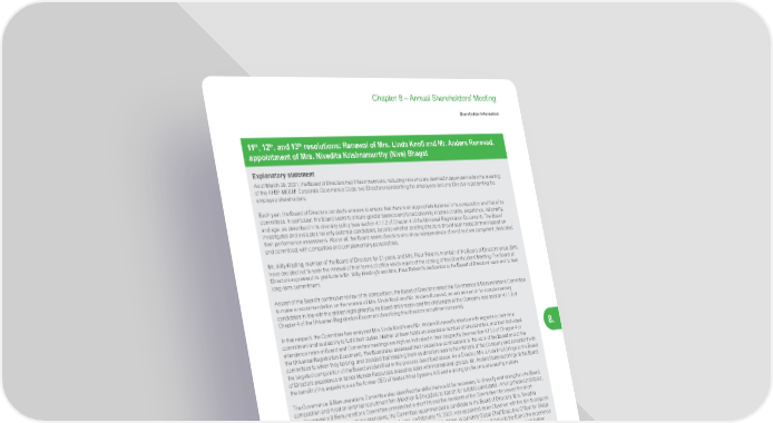 453 Life Is On | Schneider Electric www.se.com Chapter 8 – Annual Shareholders’ Meeting Shareholder Information 8. 11 th , 12 th , and 13 th resolutions: Renewal of Mrs. Linda Knoll and Mr. Anders Runevad, appointment of Mrs. Nivedita Krishnamurthy (Nive) Bhagat Explanatory statement As of March 29, 2021, the Board of Directors had fifteen members, including nine who are deemed independent within the meaning of the AFEP-MEDEF Corporate Governance Code, two Directors representing the employees and one Director representing the employee shareholders. Each year, the Board of Directors conducts a review to ensure that there is an appropriate balance in its composition and that of its committees. In particular, the Board seeks to ensure gender balance and broad diversity in terms of skills, experience, nationality, and age, as described in its diversity policy (see section 4.1.1.2 of Chapter 4 of the Universal Registration Document). The Board investigates and evaluates not only potential candidates, but also whether existing directors should seek reappointment based on their performance assessment. Above all, the Board seeks directors who show independence of mind and are competent, dedicated and committed, with compatible and complementary personalities. Mr. Willy Kissling, member of the Board of Directors for 21 years, and Mrs. Fleur Pellerin, member of the Board of Directors since 2018, have decided not to seek the renewal of their terms of office which expire at the closing of this Shareholders’ Meeting. The Board of Directors expressed its gratitude to Mr. Willy Kissling’s and Mrs. Fleur Pellerin’s dedication to the Board of Directors’ work and to their long-term commitment. As part of the Board’s continuous review of its composition, the Board of Directors asked the Governance & Remunerations Committee to make a recommendation on the renewal of Mrs. Linda Knoll and Mr. Anders Runevad, as well as search for complementary candidates in line with the skillset highlighted by its Board skills matrix and the challenges of the Company (see section 4.1.1.6 of Chapter 4 of the Universal Registration Document describing the directors recruitment process). In that respect, the Committee has analyzed Mrs. Linda Knoll’s and Mr. Anders Runevad’s situation with regards to their time commitment and availability to fulfill their duties. Neither of them holds an excessive number of directorships, and their individual attendance rates at Board and Committee meetings are high as indicated in their biography (see section 4.1.1.2 of Chapter 4 of the Universal Registration Document). The Board also assessed their respective contributions to the work of the Board and of the committees to which they belong, and decided that keeping them as directors was in the interests of the Company and consistent with the targeted composition of the Board as identified in the process described above. As a Director, Mrs. Linda Knoll brings to the Board of Directors experience in senior Human Resources executive roles with international groups. Mr. Anders Runevad brings to the Board the benefit of his experience as the former CEO of Vestas Wind Systems A/S and a strong profile on sustainability matters. The Governance & Remunerations Committee also identified the skills that would be necessary to diversify and strengthen the Board composition and hired an external recruitment firm (Heidrick & Struggles) to search for suitable candidates. Among these candidates, the Governance & Remunerations Committee preselected a short list and the members of the Committee interviewed the short- listed candidates. Following these interviews, the Committee recommended a candidate to the Board of Directors, Mrs. Nivedita Krishnamurthy Bhagat, also known as Nive Bhagat, who, on February 16, 2022, was appointed as an Observer with the aim to propose her appointment to the Shareholders’ Meeting. Mrs. Nive Bhagat, a British citizen, is currently Global Chief Executive Officer for Global Cloud Infrastructure Services of Capgemini and a member of its group executive committee. She will bring to the Board the experience and additional skillset based on her wide-ranging finance and business background especially in the field of digital and will further add to the gender diversity of the Board of Directors. She will also strengthen the profile of the Schneider Electric Board through her excellent knowledge of the Asian market. She will qualify as an independent Director with regard to all the criteria set by Article 9.5 of the AFEP-MEDEF Corporate Governance Code and, if appointed, will join the Digital Committee. Acting upon recommendation of the Governance & Remunerations Committee, the Board of Directors propose to shareholders: • in the 11 th resolution, to renew the term of office of Mrs. Linda Knoll for a four-year (4) term; • in the 12 th resolution, to renew the term of office of Mr. Anders Runevad for a four-year (4) term; and • in the 13 th resolution, , to appoint Mrs. Nive Bhagat as a Director for a four-year (4) term. Should these resolutions be approved, the Board of Directors would consist of 14 members (including one Director representing the employee shareholders and two Directors representing the employees), with an independence rate of 82% and 45% of women (excluding the three Directors who are also employees) and 79% being of non-French origin or nationalities. Mrs. Linda Knoll, Mr. Anders Runevad, and Mrs. Nive Bhagat’s biographies are provided in section 4.1.1.2 of Chapter 4 of the 2021 Universal Registration Document. Text of the eleventh resolution (Renewal of the term of office of Mrs. Linda Knoll) The Annual Shareholders’ Meeting, having satisfied the quorum and majority requirements for ordinary meetings, having heard the Board of Directors’ report, takes note that the term of office of Mrs. Linda Knoll as a Director expires at the closing of this Shareholders’ Meeting and decides to renew i