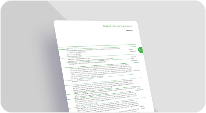 219 Life Is On | Schneider Electric www.se.com Chapter 2 – Sustainable development Strategic Report 2. 2.7.3 Sustainability Accounting Standard (SASB) Correspondence table Topic Accounting metric Category Unit of measure Code Response/ Data/ Reference Topic Energy Management (1) Total energy consumed Quantitative Gigajoules (GJ) R T- E E -13 0 a .1 The following KPIs covers our measured energy consumption (about 81% of Group energy consumption): (1) 3,889,318 GJ (1,080,366 MWh) (2) 37.0% (399,564 MWh) (3) 58.3% (629,844 MWh) Energy Management (2) percentage grid electricity Percentage (%) (3) percentage renewable Hazardous Waste Management Amount of hazardous waste generated, percentage recycled Quantitative Metric tons (t), Percentage (%) R T- E E -15 0 a .1 Hazardous waste generated: 8,549 tons. Hazardous waste channeled according to Schneider Electric expectations: 8,549 tons. Hazardous Waste Management Number and aggregate quantity of reportable spills, quantity recovered Number, Kilograms (kg) RT- EE-150a.2 Zero reportable spills in 2021, therefore no recovered quantity to report. Product Safety Number of recalls issued, total units recalled Quantitative Number R T- E E -2 5 0 a .1 14 product recalls have been issued in 2021. Schneider Electric has an Offer Safety Alert (OSA) process to alert the relevant Line of Business and other interested parties as soon as it is suspected that customers’ health or property safety may be put at risk by Schneider products, solutions, or projects. The Offer Safety Alert Committee (OSAC) is a permanent corporate committee that oversees and regulates the management of OSA. Its mission is to ensure all OSA are managed with the due diligence and urgency to minimize safety risks to customers. Its independent, multi-discipline nature allows the OSAC to make decisions in our customers’ best interest. Product Safety Total amount of monetary losses as a result of legal proceedings associated with product safety Reporting currency RT-EE-250a.2 No material loss at the Group level. Product Life cycle Management Percentage of products by revenue that contain IEC 62474 declarable substances Quantitative Percentage (%) by revenue R T- E E - 410 a .1 Around 60 to 70% of our products (by turnover) contain IEC 62474 substances (which covers 37 worldwide regulations and about 160 substance families). With the current information collected from our supply chain, we manage to cover nearly all substances and regulations. Information disclosed for our Green Premium products covers these substances. More details on Green Premium in section 2.4.3 “Green offers” page 156. Product Life cycle Management Percentage of eligible products, by revenue, that meet ENERGY STAR ® criteria RT- EE- 410a.2 This metric is not relevant at global level as it is only applicable in US and Canada. Revenues derived from ENERGY STAR UPS are included in our Impact Revenues measure (see below). Revenue from renewable energy-related and energy efficiency-related products Reporting currency RT-EE-410a.3 Schneider Electric measures “Impact revenues” (previously “Green revenues”), ie revenues coming from offers that bring energy, climate, or resource efficiency to our customers, while not generating any significant harmful impact to the environment. In 2021, 71% of Group revenues qualify as Impact revenues. The Group aims to grow its Impact revenues to 80% by 2025 as part of SSI 2021-2025. Materials Sourcing Description of the management of risks associated with the use of critical materials Discussion and Analysis n/a RT-EE-440a.1 Details regarding our sustainable procurement practices are provided in section 2.2.11 “Sustainable relations with suppliers” page 117, in particular our Vigilance plan, Conflict Minerals and cobalt programs. When the country of origin is known to be in the conflict zone, 100% of the smelters and refiners were verified conformant. Therefore, the Group has no reason to believe that any conflict minerals the Group sourced, have directly or indirectly financed or benefitted armed conflict in the covered countries. The Group is exposed to fluctuations in energy and raw material prices, in particular steel, copper, aluminum, silver, lead, nickel, zinc and plastics. The Group has implemented certain procedures to limit exposure to rising non-ferrous and precious raw material prices. The Purchasing departments of the operating units report their purchasing forecasts to the Corporate Finance and Treasury department. Purchase commitments are hedged using forward contracts, swaps and, to a lesser extent, options. Materials Sourcing Business Ethics Description of policies and practices for prevention of: (1) corruption and bribery and (2) anti-competitive behavior Discussion and Analysis n/a R T- E E - 510 a .1 As stated in its Trust Charter and Anti-Corruption Code of Conduct, Schneider Electric is committed to comply with all applicable laws and regulations, such as the OECD’s Convention on Combating Bribery of Foreign Public Officials in International Business Transactions, the US Foreign Corrupt Practices Act (FCPA), the UK Bribery Act, and the French Sapin II law. Schneider Electric applies a zero-tolerance policy towards corruption and other unethical business practices and considers that “doing things right” is a key value-creation driver for all its stakeholders. We count on our employees and third parties to promote business integrity. A thorough description of our policies and practices is provided in sections ‘Prohibit any Form of Corruption” and “Require Third-Party Integrity” of the Trust Charter. Business Ethics Total amount of monetary losses as a result of legal proceedings associated with bribery or corruption Quantitative Reporting currency RT- EE- 510a. 2 No material losses. Total amount of monetary losses as a result of legal proceedings associated with anticompetitive behavior regulations Quantitative RT-EE-510a.3 No material 