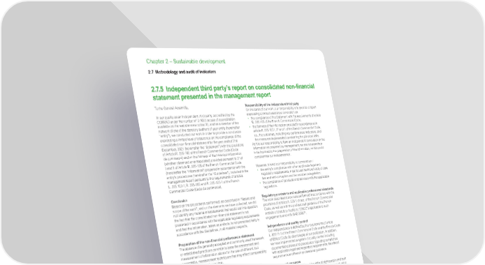 www.se.com Schneider Electric Universal Registration Document 2021 224 Chapter 2 – Sustainable development 2.7 Methodology and audit of indicators 2.7.5 Independent third party’s report on consolidated non-financial statement presented in the management report To the General Assembly, In our quality as an independent third party, accredited by the COFRAC under the number n° 3-1681 (scope of accreditation available on the website www.cofrac.fr), and as a member of the network of one of the statutory auditors of your entity (hereinafter “entity”), we conducted our work in order to provide a conclusion expressing a limited level of assurance on the compliance of the consolidated non-financial statement for the year ended 31st December, 2021 (hereinafter the “Statement”) with the provisions of Article R. 225-105 of the French Commercial Code (Code de commerce) and on the fairness of the historical information (whether observed or extrapolated) provided pursuant to 3° of I and II of Article R. 225-105 of the French Commercial Code (hereinafter the “Information”) prepared in accordance with the entity’s procedures (hereinafter the “Guidelines”), included in the management report pursuant to the requirements of articles L. 225 102-1, R. 225-105 and R. 225-105-1 of the French Commercial Code (Code de commerce). Conclusion Based on the procedures performed, as described in “Nature and scope of the work”, and on the elements we have collected, we did not identify any material misstatements that would call into question the fact that the consolidated non-financial statement is not presented in accordance with the applicable regulatory requirements and that the Information, taken as a whole, is not presented fairly in accordance with the Guidelines, in all material respects. Preparation of the non-financial performance statement The absence of a generally accepted and commonly used framework or established practices on which to base the assessment and measurement of information allows for the use of different, but acceptable, measurement techniques that may affect comparability between entities and over time. Therefore, the Information should be read and understood with reference to the Guidelines, the significant elements of which are presented in the Statement. Limitations inherent in the preparation of the Information The information may be subject to uncertainty inherent in the state of scientific or economic knowledge and the quality of external data used. Certain information is sensitive to the methodological choices, assumptions and/or estimates made in preparing it and presented in the Statement. The entity’s responsibility It is the responsibility of the Board of Directors to: • select or establish appropriate criteria for the preparation of the Information; • prepare a Statement in accordance with legal and regulatory requirements, including a presentation of the business model, a description of the main non-financial risks, a presentation of the policies applied with regard to these risks as well as the results of these policies, including key performance indicators; • and to implement the internal control procedures it deems necessary to ensure that the Information is free from material misstatement, whether due to fraud or error. The Statement has been prepared in accordance with the entity’s procedures, the main elements of which are presented in the Statement (or which are available on request at the entity’s head office). Responsibility of the independent third party On the basis of our work, our responsibility is to provide a report expressing a limited assurance conclusion on: • the compliance of the Statement with the requirements of article R. 225-105 of the French Commercial Code; • the fairness of the information provided in accordance with article R. 225 105 I, 3° and II of the French Commercial Code, i.e., the outcomes, including key performance indicators, and the measures implemented considering the principal risks. As it is our responsibility to form an independent conclusion on the Information as prepared by management, we are not permitted to be involved in the preparation of the Information, as this could compromise our independence. However, it is not our responsibility to comment on : • the entity’s compliance with other applicable legal and regulatory requirements, in particular the French duty of care law and anti-corruption and tax avoidance legislation; • the compliance of products and services with the applicable regulations. Regulatory provisions and applicable professional standards The work described below was performed in accordance with the provisions of articles A. 225-1 et seq. of the French Commercial Code, as well as with the professional guidance of the French Institute of Statutory Auditors (“CNCC”) applicable to such engagements and with ISAE 3000 (1) . Independence and quality control Our independence is defined by the requirements of article L. 822-11-3 of the French Commercial Code and the French Code of Ethics (Code de déontologie) of our profession. In addition, we have implemented a system of quality control including documented policies and procedures regarding compliance with applicable legal and regulatory requirements, the ethical requirements and French professional guidance. Means and resources Our verification work mobilized the skills of eight people and took place between October 2021 and March 2022 on a total duration of intervention of about twenty-three weeks. We conducted several interviews with the people responsible for the preparation of the Statement. Nature and scope of the work We planned and performed our work taking into account the risks of material misstatement of the Information. In our opinion, the procedures we have performed in the exercise of our professional judgment enable us to provide a limited level of assurance: • we obtained an understanding of all the c