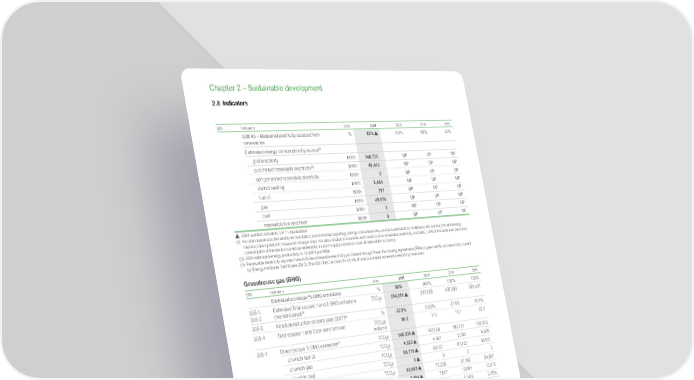 www.se.com Schneider Electric Universal Registration Document 2021 230 Chapter 2 – Sustainable development 2.8 Indicators GRI Indicators Units 2021 2020 2019 2018 SSE #3 – Measured electricity sourced from renewables % 82% 80% 50% 30% Estimated energy consumption by source (1) grid electricity MWh 148,720 UP UP UP purchased renewable electricity (3) MWh 40,443 UP UP UP self generated renewable electricity MWh 0 UP UP UP district heating MWh 5,491 UP UP UP fuel oil MWh 797 UP UP UP gas MWh 49,674 UP UP UP coal MWh 0 UP UP UP renewable fuel and heat MWh 0 UP UP UP 2021 audited indicators. UP = Unpublished. (1) For sites below size thresholds for mandatory environmental reporting, energy consumption by source is estimated by multiplying site surface (m 2 ) with energy intensity ratios (kWh/m 2 ) measured in larger sites. For sites located in countries with country-level renewable electricity contracts, 100% of the estimated electricity consumption of the site is counted as renewable, as such supply contracts cover all sites within a country. (2) 2005 estimated energy productivity is 12,408 € per MWh (3) Renewable electricity reported here includes renewable electricity purchased through Power Purchasing Agreements (PPA) or green tariffs, and electricity covered by Energy Attributes Certificates (EAC). The 2021 EAC account for 43.5% of total purchased renewable electricity measured. Greenhouse gas (GHG) GRI Indicators Units 2021 2020 2019 2018 Estimated coverage (% GHG emissions) % 99% 100% 100% 100% 305 -1, 305-2 Estimated Total scopes 1 and 2 GHG emissions (market-based) (1) TCO 2 e 294,051 2 87, 8 6 5 4 37, 2 9 3 570,431 305-5 Absolute reduction vs base year (2017) (2) % - 57. 9% -58.8% - 37. 4% -18.4% 305-4 Total scopes 1 and 2 per euro turnover TCO 2 e/ million € 10.2 11. 4 16 .1 22.2 305 -1 Direct (scope 1) GHG emissions (1) TCO 2 e 140,936 142,658 18 0,751 189,870 of which fuel oil TCO 2 e 4,520 4,4 51 5,74 8 6,626 of which gas TCO 2 e 56,776 5 2,197 61,733 65,631 of which coal TCO 2 e 0 0 0 0 of which vehicle fleet TCO 2 e 62,683 73,229 91,16 9 94,287 of which SF 6 emissions (3) TCO 2 e 6 ,10 4 7, 5 5 7 13,601 13,010 SF 6 leakage rate % 0.10% 0 .14% 0.24% 0.26% Target SF 6 leakage rate % 0.19% 0.25% 0.25% 0.25% of which estimated scope 1 GHG emissions of sites out of reporting perimeter (4) TCO 2 e 10,853 5,224 8,499 10,316 305-2 Energy indirect (Scope 2) GHG emissions (1) TCO 2 e 153,115 145,207 256,542 380,561 of which grid electricity (market-based) TCO 2 e 66,692 70 ,14 5 13 4 ,12 2 258,975 of which renewable electricity (market-based) (5) TCO 2 e 701 694 795 219 of which district heating TCO 2 e 14,714 11, 5 5 0 35,020 39,5 41 of which estimated scope 2 GHG emissions of sites out of reporting perimeter (market- based) (4) TCO 2 e 71,008 62,818 86,605 81,825 305-3 Other relevant indirect (scope 3) GHG emissions TCO 2 e 68,901,866 65,921,222 74,256,245 70,765,244 305-5 Absolute variation vs base year (2017) (2) % 2.2% -2.2% 10.2% 5.0% 305-4 Total scope 3 per euro turnover TCO 2 e/ million € 2,384 2,620 2,733 2,750