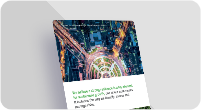 Chapter 3 – How we manage risk at Schneider Electric Schneider Electric Universal Registration Document 2021 242 www.se.com We believe a strong resilience is a key element for sustainable growth, one of our core values. It includes the way we identify, assess and manage risks.