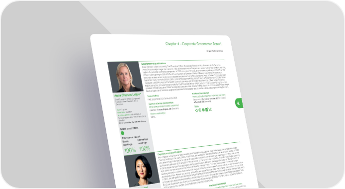 277 Life Is On | Schneider Electric www.se.com Chapter 4 – Corporate Governance Report Corporate Governance 4. Experience and qualifications Anna Ohlsson-Leijon is currently Chief Executive Officer Europe and Executive Vice-President of AB Electrolux. Anna Ohlsson-Leijon began her career in 1993 at PricewaterhouseCoopers where she held various positions advising high-tech, industrial and media companies. In 2000, she joined Kimoda, an e-commerce platform, as Chief Financial Officer, before joining in 2001 AB Electrolux (Sweden) as Director of Project Management. Anna Ohlsson-Leijon then held various senior positions in corporate functions including Director Internal Audit & Global Program Manager Sarbanes-Oxley Act from 2003 to 2005, Head of Management Assurance & Special Assignments until 2008, Group Treasurer until 2011, Head of Corporate Control & Services until 2013 and Chief Financial Officer Major Appliance EMEA thereafter. She was then promoted to Chief Financial Officer of AB Electrolux in 2016 before taking her current position of Chief Executive Officer Europe and Executive Vice-President of AB Electrolux in 2018. Anna Ohlsson-Leijon holds a Bachelor of Sciences Degree in Business Administration and Economics from Linköping University (Sweden). Anna Ohlsson-Leijon* Chief Executive Officer Europe and Executive Vice-President of AB Electrolux Age: 53 years Nationality: Swedish Business address: AB Electrolux, St Göransgatan 143, 105 45 Stockholm, Sweden 1,000 Schneider Electric SE shares Board committees Attendance rate at: Board meetings 100% Committee meetings 100% Term of office First appointed: 2021/Term ends: 2025 Current external directorships Other directorships at listed companies: Director of Atlas Copco AB (Sweden). Other directorships: None. Previous directorships Previous directorships held in the past five years: Observer of Schneider Electric SE ; Director of Alfa Laval AB (Sweden). Skills Experience and qualifications Fleur Pellerin is the Founder and currently the CEO of Korelya Capital. Fleur Pellerin became a magistrate at the Court of Auditors in the early 2000s. In addition, she worked for the United Nations as an external auditor. In 2007, she joined “Club XXIe Siècle”, a not-profit association dedicated to diversity and equal opportunities, and served as President between 2010 and 2012. She took over as French Minister for SMEs, Innovation and Digital Economy in 2012 where she launched a program for the development of French start-ups referred to as “French Tech”. In April 2014, she was appointed Secretary of State for Foreign Trade, Tourism Development and French people residing abroad, a position that she held till August 2014 when she became Minister for Culture and Communication. Additionally, Fleur Pellerin is a lecturer at the ENA and was a Director of the Public Sénat channel from 2011 to 2012. In 2016, she left politics and founded Korelya Capital, an investment fund with €330 million under management which promotes and supports investments in technology start-ups in France and in Europe. Fleur Pellerin graduated from the Ecole Supérieure des Sciences Economiques et Commerciale (ESSEC), the Paris Institut d’Etudes Politiques (IEP-Sciences-Po), and the Ecole Nationale d’Administration (ENA). Fleur Pellerin* Founder & Chief Executive Officer of Korelya Capital Age: 48 years Nationality: French Business address: Korelya Capital, 87 rue Réaumur, 75002 Paris, France 1,000 Schneider Electric SE shares Board committees Attendance rate at: Board meetings 71.5% Committee meetings 100% Term of office First appointed: 2018/Term ends: 2022 Current external directorships Other directorships at listed companies: Director of I2PO (France); Member of the Supervisory Board of KLM Royal Dutch Airlines (the Netherlands). Other directorships: Director and CEO of Korelya Consulting, Korelya Capital, Korelya Fondateurs (France); Director of Korelya Portfolio companies (Devialet, Ledger, Synapse); Director of Stanhope Capital LLP (United Kingdom); Member of the Strategic orientations committee of Talan (France); Member of the Board or Supervisory committee of following Associations: Canneseries, Eurockéennes, and France Digitale (France). Previous directorships Previous directorships held in the past five years: Director of Reworld Media (France), of Naver France (France) and of Snips (France). Skills * An independent Director within the meaning of the AFEP-MEDEF Corporate Governance Code. Note: bold indicates the names of companies whose securities are listed on a regulated market. Skills Public Company Management Corporate Finance International Markets Industry Knowledge Sustainability Law, Governance, Ethics & Compliance Digital & Technology Accounting, Audit & Risk Employee perspective and knowledge of the Group