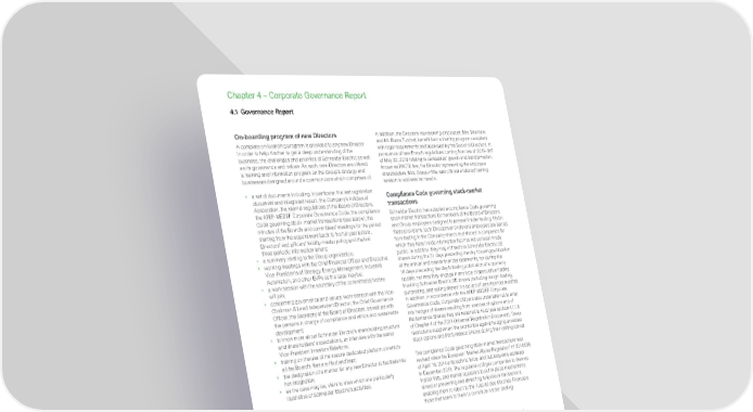 www.se.com Schneider Electric Universal Registration Document 2021 298 Chapter 4 – Corporate Governance Report On-boarding program of new Directors A complete on-boarding program is provided to any new Director in order to help him/her to get a deep understanding of the business, the challenges and priorities of Schneider Electric as well as its governance and values. As such, new Directors are offered a training and information program on the Group’s strategy and businesses designed around a common core which comprises of: • a set of documents including, in particular, the last registration document and integrated report, the Company’s Articles of Association, the internal regulations of the Board of Directors, the AFEP-MEDEF Corporate Governance Code, the compliance Code governing stock- market transactions (see below), the minutes of the Board’s and committees’ meetings for the period starting from the appointment back to the full year before, Directors’ and officers’ liability master policy and the last three periodic information letters; • a summary relating to the Group organization; • working meetings with the Chief Financial Officer and Executive Vice-Presidents of Strategy, Energy Management, Industrial Automation, and other EVPs as the case may be; • a work session with the secretary of the committee(s) he/she will join; • concerning governance and values: work session with the Vice- Chairman & Lead Independent Director; the Chief Governance Officer, the Secretary of the Board of Directors, as well as with the persons in charge of compliance and ethics and sustainable development; • to know more about Schneider Electric’s shareholding structure and shareholders’ expectations, an interview with the senior Vice-President Investors Relations; • training on the use of the secure dedicated platform on which all the Board’s files are filed and kept; • the designation of a mentor for any new Director to facilitate his/ her integration; • as the case may be, visits to sites which are particularly illustrative of Schneider Electric’s activities. In addition, the Directors representing employees, Mrs. Rita Felix and Mr. Bruno Turchet, benefit from a training program compliant with legal requirements and approved by the Board of Directors. In pursuance of new French regulations coming from law n° 2019-486 of May 22, 2019 relating to companies’ growth and transformation, known as PACTE law, the Director representing the employee shareholders, Mrs. Xiaoyun Ma, was offered a tailored training session to address her needs. Compliance Code governing stock-market transactions Schneider Electric has adopted a compliance Code governing stock-market transactions for members of the Board of Directors and Group employees designed to prevent insider trading. Under these provisions, both Directors and relevant employees are barred from trading in the Company shares and shares in companies for which they have inside information that has not yet been made public. In addition, they may not trade in Schneider Electric SE shares during the 31 days preceding the day following publication of the annual and interim financial statements, nor during the 16 days preceding the day following publication of a quarterly update, nor may they engage in any type of speculative trading involving Schneider Electric SE shares (including margin trading, purchasing, and selling shares in a period of less than four months). In addition, in accordance with the AFEP-MEDEF Corporate Governance Code, Corporate Officers also undertake not to enter into hedges of shares resulting from exercise of options and of Performance Shares they are required to hold (see section 4.1.1.5 of Chapter 4 of the 2021 Universal Registration Document). These restrictions supplement the prohibition against hedging unvested stock options and Performance Shares during their vesting period. The compliance Code governing stock-market transactions was revised when the European “Market Abuse Regulation” nº 2014/596 of April 16, 2014 entered into force, and subsequently updated in December 2018. The regulation obliges companies to draw up insider lists, and market operators to put in place mechanisms aimed at preventing and detecting suspicious transactions, enabling them to report to the Autorité des Marchés Financiers those that seem to them to constitute insider dealing. 4.1.2.6 Self-assessment of the Board of Directors Pursuant to its internal regulations, Schneider Electric SE’s Board of Directors annually reviews its composition, organization, and operations, as well as those of its committees. This yearly assessment is carried out through a written questionnaire sent to Board members or an interview with the Board member. The evaluation is conducted under the leadership of the Vice-Chairman & Lead Independent Director by the Secretary of the Board of Directors. In addition, as per the AFEP-MEDEF Corporate Governance Code, the Board of Directors shall undertake at least once every three years, a formal self-assessment, which may be conducted with the assistance of an external consultant. Internal self-assessment conducted in September and October 2021 An internal assessment was conducted by the Vice-Chairman & Lead Independent Director, who guaranteed the confidentiality of opinions expressed, based on (i) a questionnaire answered anonymously by Board members and (ii) another anonymous questionnaire answered by Executive Committee members to know better their expectations toward the Board of Directors. The report was presented and discussed in detail at the Governance & Remunerations Committee on October 25, 2021 and a summary report was presented to the Board of Directors on October 26, 2021. The Vice-Chairman & Lead Independent Director provided individual feedback on the assessments of the effective contribution of each Director. Themes (i) Membership and dynamics of the Board; (ii) Mission, organ