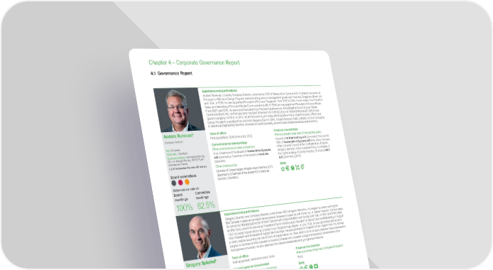 www.se.com Schneider Electric Universal Registration Document 2021 278 Chapter 4 – Corporate Governance Report Board committees Governance & Remunerations Committee Audit & Risks Committee Investment Committee Digital Committee Human Resources & CSR Committee C Committee Chair Experience and qualifications Anders Runevad, currently Company Director, is the former CEO of Vestas Wind Systems A/S. He started his career at Ericsson in 1984 as a Design Engineer before holding various management positions in Sweden, Singapore, Brazil, UK and USA. In 1998, he was appointed President of Ericsson Singapore. From 2000 to 2004, he served as Vice-President Sales and Marketing of Ericsson Mobile Communications AB. In 2004, he was appointed President of Ericsson Brazil. From 2007 until 2010, he served as Executive Vice-President and member of the Board at Sony Ericsson Mobile Communications AB. He then became President of Western & Central Europe at Telefonaktiebolaget LM Ericsson (public company) in 2010. In 2013, he left Ericsson to join Vestas Wind Systems A/S as Chief Executive Officer and Group President, a position from which he stepped down in 2019. Anders Runevad holds a Master of Science Degree in Electrical Engineering from the University of Lund (Sweden), where he also studied business and economy. Anders Runevad* Company Director Age: 62 years Nationality: Swedish Business address: Schneider Electric, 35, rue Joseph Monier, 92500 Rueil- Malmaison, France 1,000 Schneider Electric SE shares Board committees Attendance rate at: Board meetings 100% Committee meetings 82.5% Term of office First appointed: 2018/Term ends: 2022 Current external directorships Other directorships at listed companies: Vice-Chairman of the Board of Vestas Wind Systems A/S (Denmark); Chairman of the Board of Peab AB (Sweden). Other directorships: Director of Copenhagen Infrastructure Partners (CIP) (Denmark); Chairman of the Board PGA National Sweden (Sweden). Previous directorships Previous directorships held in the past five years: Director of Nilfisk Holding A/S (Denmark); President & CEO of Vestas Wind Systems A/S (Denmark); Member of the General Council of the Confederation of Danish Industry; Member of the Industrial Policy Committee of the Confederation of Danish Industry, Director of NKT A/S (Denmark) (2018). Skills Experience and qualifications Gregory Spierkel, now Company Director, is the former CEO of Ingram Micro Inc. He began his career working for Bell Canada in sales and product development, followed by a period with Nortel Inc. in market research. For four years, he served as Managing Director of Mitel Telecom with responsibilities over Europe and Asia. He then spent five years at Mitel Corp. where he served as President of North America and President of Global Sales and Marketing. In August 1997, he joined Ingram Micro as a Senior Vice-President Asia-Pacific. In June 1999, he was appointed as Executive Vice-President and President of Ingram Micro Europe. He was promoted to President of the Ingram Micro Inc. Group in 2004, before assuming the role of CEO of Ingram Micro Inc. from 2005 to 2012. Gregory Spierkel holds a Bachelor’s Degree in Commerce from Carleton University (Ottawa) and a Master’s Degree in Business Administration from Georgetown University. He also attended the Advanced Manufacturing program at INSEAD. Gregory Spierkel* Company Director Age: 65 years Nationality: Canadian Business address: Schneider Electric, 35, rue Joseph Monier, 92500 Rueil- Malmaison, France 1,000 Schneider Electric SE shares Board committees C Attendance rate at: Board meetings 100% Committee meetings 100% Term of office First appointed: 2015/Term ends: 2023 Current external directorships Other directorships at listed companies: Director of MGM Resorts International (USA); Director of PACCAR Inc. (USA). Other directorships: Member of McLaren Advisory Group (McLaren Technology Group) (United Kingdom). Previous directorships Previous directorships held in the past five years: None. Skills * An independent Director within the meaning of the AFEP-MEDEF Corporate Governance Code. Note: bold indicates the names of companies whose securities are listed on a regulated market. 4.1 Governance Report