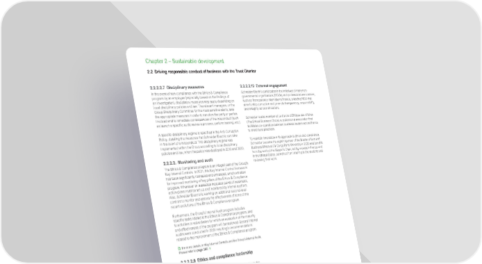 www.se.com Schneider Electric Universal Registration Document 2021 100 Chapter 2 – Sustainable development 2.2 Driving responsible conduct of business with the Trust Charter 2.2.2.2.7 Disciplinary measures In the event of non-compliance with the Ethics & Compliance program by an employee (especially based on the findings of an investigation), disciplinary measures may apply depending on local disciplinary policies and law. The relevant managers, or the Group Disciplinary Committee for the most sensitive alerts, take the appropriate measures in order to sanction the party or parties involved and to remediate consequences of the misconduct (such as launch a specific audit, review a process, perform training, etc.). A specific disciplinary regime is specified in the Anti-Corruption Policy, detailing the measures that Schneider Electric can take in the event of a misconduct. This disciplinary regime was implemented within the Group according to local disciplinary policies and law, when the policy was deployed in 2019 and 2020. 2.2.2.2. Monitoring and audit The Ethics & Compliance program is an integral part of the Group’s Key Internal Controls. In 2021, this Key Internal Control framework has been significantly reshaped and enhanced, which will allow for improved monitoring of key pillars of the Ethics & Compliance program. Whenever an evaluation indicates points of weakness, action plans must be set up and monitored by internal auditors. Also, Schneider Electric is working on additional second-level controls to monitor and assess the effectiveness of some of the recent evolutions of the Ethics & Compliance program. Furthermore, the Group’s Internal Audit program includes specific tasks related to the Ethics & Compliance program, and to activities or subsidiaries for which an evaluation of the maturity and effectiveness of the program will be reviewed. Several internal audits were conducted in 2021 resulting in recommendations related to the improvement of the Ethics & Compliance program. For more details on Key Internal Controls and the Group’s Internal Audit, Please refer to page 247. 2.2.2.2.9 Ethics and compliance leadership in times of crisis The focus on ethics and compliance has increased due to the COVID-19 pandemic, with actions put into place such as global guidance for all Country Presidents on “Ethics & Compliance considerations in the management of COVID-19”, global risk- management live talks focusing on general compliance, HR compliance, and export control, and finally, meetings with subject matter experts to identify and manage the main risks related to COVID -19. 2.2.2.2.10 External engagement Schneider Electric participates in the initiatives of many non- governmental organizations (NGOs) and professional associations, such as Transparency International France, a leading NGO that aims to stop corruption and promote transparency, responsibility, and integrity across all sectors. Schneider is also member of Le Cercle d’Éthique des Affaires (The Ethical Business Circle), a professional association that facilitates co-operation between business leaders across France to share best practices. To maintain innovation in its approach to ethics and compliance, Schneider became the eighth sponsor of the Master of Law and Business Ethics at CY Cergy Paris University in 2020 and benefits from the work of the Master’s Chair, led by experts in France and in the United States, as well as from listening to the students and reviewing their work.