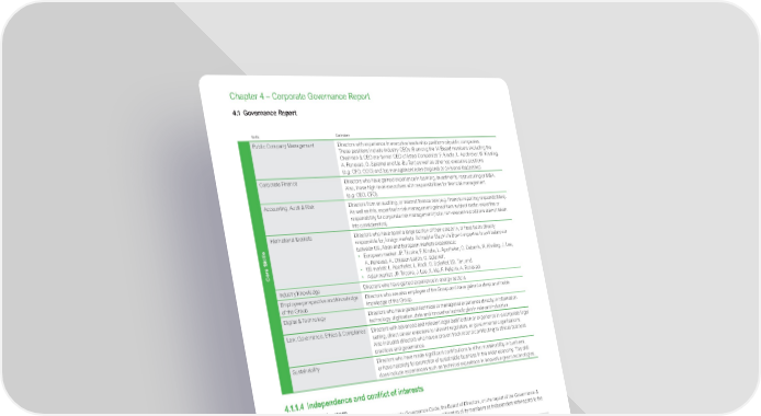 www.se.com Schneider Electric Universal Registration Document 2021 282 Chapter 4 – Corporate Governance Report Skills Definition Core Skills Public Company Management Directors with experience in executive leadership positions of public companies. These positions include industry CEOs (6 among the 14 Board members excluding the Chairman & CEO are former CEO of listed Companies: F. Kindle, L. Apotheker, W. Kissling, A. Runevad, G. Spierkel and Lip-Bu Tan) as well as other top executive positions ( e.g. CFO, COO) and top management roles (regional or divisional leadership). Corporate Finance Directors who have gained experience in banking, investments, restructuring or M&A. Also, those high-level executives with responsibilities for financial management ( e.g. CEO, CFO). Accounting, Audit & Risk Directors from an auditing, or internal finance role ( e.g. financial reporting responsibilities). As well as this, expertise in risk management gained from subject matter expertise or responsibility for corporate risk management (note: non-executive positions are not taken into consideration). International Markets Directors who have spent a large portion of their career in, or have been directly responsible for, foreign markets. Schneider Electric’s Board expertise is well balanced between US, Asian and European markets experience: • European market: JP. Tricoire, F. Kindle, L. Apotheker, C. Cabanis, W. Kissling, J. Lee, A. Runevad, A. Ohlsson-Leijon, G. Spierkel; • US market: L. Apotheker, L. Knoll, G. Spierkel, LB. Tan; and • Asian market: JP. Tricoire, J. Lee, X. Ma, F. Pellerin, A. Runevad. Industry Knowledge Directors who have gained experience in energy sectors. Employee perspective and Knowledge of the Group Directors who are also employee of the Group and have gained a deep and inside knowledge of the Group. Digital & Technology Directors who have gained technical or managerial experience directly in information technology, digitization, data and innovative technologies in relevant industries. Law, Governance, Ethics & Compliance Directors with advanced and relevant legal qualification or experience in a corporate legal setting, direct career exposure to relevant regulators, or governmental organisations. Also includes directors who have a proven track record contributing to ethical business practices and governance. Sustainability Directors who have made significant contributions to either sustainability in business, or have notoriety for promotion of sustainable business in the wider economy. This skill does include experiences such as technical experience in innovative green technologies. 4.1.1.4 Independence and conflict of interests Independent Directors Each year, as provided under the AFEP-MEDEF Corporate Governance Code, the Board of Directors, on the report of the Governance & Remunerations Committee, dedicates one of the points on its agenda to the qualification of its members as independent with regard to the criteria for independence set out in Article 9.5 of this Code and presented in the table below. Criterion 1: employee or Corporate Officer within the previous five years Not to be and not to have been within the previous five years: • an employee or executive Corporate Officer of the Company; • an employee, executive Corporate Officer, or Director of a company consolidated with the Company; • an employee, executive Corporate Officer, or Director of the Company’s parent company or a company consolidated with this parent company. Criterion 2: cross-directorships Not to be an executive Corporate Officer of a company in which the Company holds a directorship, directly or indirectly, or in which an employee appointed as such or an executive Corporate Officer of the Company (currently in office or having held such office within the last five years) holds a directorship. Criterion 3: significant business relationships Not to be a customer, supplier, commercial banker, investment banker, or consultant: • that is significant to the Company or its group; • or for which the Company or its group represents a significant portion of its activity. The assessment of the significance or otherwise of the relationship with the Company or its group must be debated by the Board and the quantitative and qualitative criteria that led to this evaluation (continuity, economic dependence, exclusivity, etc. ) must be explicitly stated in the annual report. 4.1 Governance Report