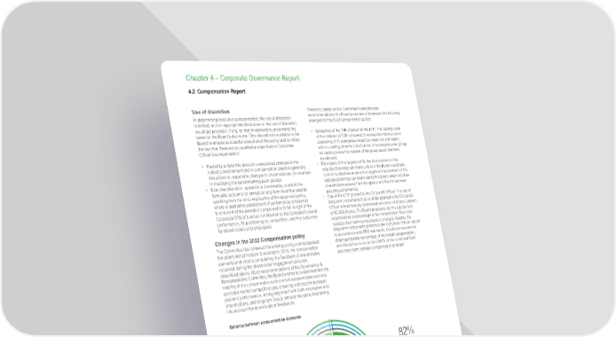 www.se.com Schneider Electric Universal Registration Document 2021 326 Chapter 4 – Corporate Governance Report Use of discretion In determining executive compensation, the use of discretion is limited, and an appropriate disclosure on the use of discretion would be provided, if any, so that shareholders understand the basis for the Board’s decisions. This discretion is available to the Board to ensure successful execution of the policy and to reflect the fact that there are no qualitative objectives in Corporate Officer’s compensation: • Flexibility to take into account unexpected changes in the industry environment and in compensation practice generally, this allows to respond to changes in circumstances, for example in modifying the benchmarking peer groups. • Exercise discretion, upwards or downwards, to adjust the formulaic outcome for annual or long-term incentive awards resulting from the strict application of the approved policy, where a qualitative assessment of performance is required to ensure that the awarded compensation is fair in light of the Corporate Officer’s actual contribution to the Company’s overall performance, its positioning vs. competition, and the outcomes for shareholders and employees. Changes in the 2022 Compensation policy The Committee has reviewed the existing policy and reassessed the pillars and principles formulated in 2018, the compensation elements and criteria considering the feedback of shareholders received during the shareholder engagement process described above. Upon recommendations of the Governance & Remunerations Committee, the Board wishes to overall maintain the stability of the compensation policy which appears balanced and provides market competitive pay, ensuring a strong link between pay and performance, strong alignment with both employees and shareholders, and long-term focus, while at the same time taking into account the shareholders’ feedbacks. Therefore, based on the Committee’s analyses and recommendations, the Board proposes to implement the following changes for the 2022 Compensation policy: • Stringency of the TSR criterion for the LTIP: The vesting scale of the criterion of TSR compared to a bespoke industry panel consisting of 11 companies would be made more stringent, with no vesting at ranks 7 and below in the bespoke peer group, no vesting below the median of the group would therefore be allowed; • Disclosure of the targets set for the improvement of the adjusted Earnings per share criterion: the Board would also commit to disclose ex-post the targets of improvement of the adjusted Earnings per share set by the Board which will allow shareholders assess their stringency and the link between pay and performance; • Cap of the LTIP granted to the Corporate Officer: The cap of long-term instruments that could be granted to the Corporate Officer was previously expressed in number of shares, capped at 60,000 shares. The Board proposes that the cap be now expressed as a percentage of his remuneration (fixed and variable short-term compensation at target). Notably, the long-term instruments granted to the Corporate Officer, valued in accordance with IFRS standards, should not represent a disproportionate percentage of his overall compensation, and should be no more than 200% of the combined fixed and short-term variable compensation at target. 23% Target annual variable compensation 130% of fixed (2) 18% Fixed compensation 59% LTI P (1) 18% Not linked to performance 41% Paid in cash 59% Paid in shares 41% Short-term 59% Long-term (minimum 3 years + presence condition) 82% Linked to performance (1) LTIP granted during 2021 fiscal year valued in accordance with IFRS standards (2) Between 0% and 260% Balance between compensation elements 4.2 Compensation Report