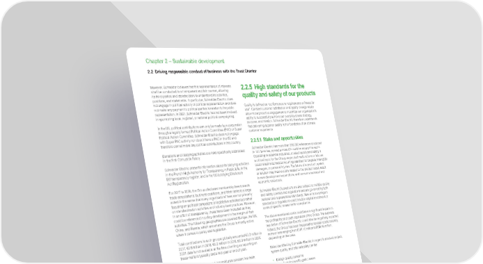 www.se.com Schneider Electric Universal Registration Document 2021 102 Chapter 2 – Sustainable development 2.2 Driving responsible conduct of business with the Trust Charter However, Schneider believes that this representation of interests shall be conducted in a transparent and fair manner, allowing its third parties and stakeholders to understand its activities, positions, and statements. In particular, Schneider Electric does not engage in political activity or political representation and does not make any payment to political parties in relation to its public representation. In 2021, Schneider Electric has not been involved in sponsoring local, regional, or national political campaigning. In the US, political contributions can only be made by a corporation through a legally formed Political Action Committee (PAC) or Super Political Action Committee. Schneider Electric does not engage with Super PAC activity nor does it have a PAC in the US and therefore cannot make any political contributions in this country. Donations and lobbying activities are risks specifically addressed in the Anti-Corruption Policy. Schneider Electric presents information about its lobbying activities in the French High Authority for Transparency in Public Life, in the EU transparency register, and in the US Lobbying Disclosure Act Registration. For 2017 to 2020, the Group discloses membership fees towards trade associations, business coalitions, and think-tanks to a large extent in the sense that many organizations’ fees are not primarily focusing on political campaigns or legislative activities but rather on standardization activities and industry best practices. However, in an effort of transparency, those have been included as they could be referenced in policy development in the margin of their activities. The following geographies are covered: Europe, the US, China, and Russia, which are where the Group is mostly active when it comes to policy and legislation. Total contributions to such groups globally amounted €3.2 million in 2017, €2.6 million in 2018, €5.2 million in 2019, €5.9 million in 2020. 2021 data is not available at the time of writing as reporting on these matters typically ends mid-year or end of year. Largest contributions and expenditures concern two main engagement topics: • The first is “sustainable energy for all”: Schneider Electric believes that energy management and energy efficiency are critical to move towards a new energy landscape and therefore supports a policy framework that unleashes the business and climate opportunities related to the new energy landscape. Contributions and expenditures on this topic amounted €0.51 million in 2020 (€0.52 million in 2019) globally; • The second is “powering the digital economy”: The Group supports the emergence of digital economy to bring new opportunities for businesses and people and therefore supports a policy framework that facilitates the digital transformation globally. Contributions and expenditures on this topic amounted €0.47 million in 2020 (€0.27 million in 2019) globally. 2.2.4 Compliance with tax regulations Schneider Electric Group engages to comply with the international and local tax regulations applicable in each of the countries in which it operates, and to provide to the tax authorities with all the information necessary to enable them to carry out their mission. The tax policy of the Group can be consulted on our website at se.com 2.2.5 High standards for the quality and safety of our products Quality is defined as “conformance to requirements or fitness for use”. Constant customer satisfaction and quality change would allow more proactive engagement to maximize our organization’s ability to successfully achieve our overall business strategy, purpose, and mission. Schneider Electric therefore understands that delivering superior quality is the foundation of an ultimate customer experience. 2.2.5.1 Risks and opportunities Schneider Electric has more than 260,000 references produced in 191 factories, spread across 46 countries around the world. Operating in essential industries, product quality and safety is a critical topic for the Group as product malfunctions or failures could result in Schneider incurring liabilities for tangible, intangible damages, or personal injuries. The failure of a product, system, or solution may involve costs related to the product recall, result in new development expenditure, and consume technical and economic resources. Schneider Electric’s products are also subject to multiple quality and safety controls and regulations and are governed by both national and supranational standards. New or more stringent standards or regulations could result in capital investment or costs of specific measures for compliance. The above-mentioned costs could have a significant impact on the profitability and cash equivalent of the Group. The business reputation of Schneider Electric could also be negatively impacted. Indeed, the Group has been impacted by several recalls recently, more or less ranging from EUR 10 million to EUR 40 million, depending on the case. Risks identified by Schneider Electric in regard to product, project, system quality, and offer reliability can be: • Design quality concerns • Manufacturing and Logistic issues • Deficient product safety • Software quality • Brand labelling, Supplier & Supply mismanagement The above risks have therefore convinced the Group to reinforce the focus on Quality, Reliability and Robustness of its offers and turn the above listed risks into opportunities for sustainability and efficiency such as: • More reliability and agility in our designs for sustainable offers • More robustness in our manufacturing and logistics processes • More digital in our partnerships and more circularity in our supply chain to reduce our carbon footprint 2.2.5.2 Quality group policy Schneider Electric, thanks to its “Issue t