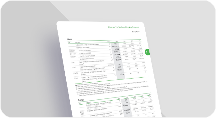 229 Life Is On | Schneider Electric www.se.com Chapter 2 – Sustainable development Strategic Report 2. Water GRI Indicators Units 2021 2020 2019 2018 Estimated coverage (% water withdrawal) % 86% 88% 88% 86% Total water withdrawals m 3 2,072,263 1,928,032 2,554,428 2,700,674 303-3-a-i of which surface water m 3 19,15 6 17, 4 61 17, 074 17, 9 9 3 303-3-a-ii of which groundwater m 3 513,631 452,602 501,163 490,563 303-3-a-v of which third party sources m 3 1,5 07,6 0 6 1,446,391 2, 0 21,16 8 2,16 3 , 2 76 of which other sources (1) m 3 31,870 11, 5 78 15,023 28,842 303-3 Water withdrawn for cooling and restituted w/o impact (2) m 3 879,602 780,201 880,276 1,376,335 303-3 Water withdrawal/Turnover (3) m 3 /million € 71.7 76.5 9 4 .1 105.0 Water withdrawal intentisy reduction vs 2017 (3) % -33.6% -2 9 .1% -12.9% -2.8% 303-3-b Total water withdrawals from areas with water stress (4) m 3 930,603 UP UP UP 303 -1 SSE #11 – Sites in water-stressed areas with a water conservation strategy and related action plan (4) % 8.5% UP UP UP 2021 audited indicators. UP = Unpublished. (1) Other water sources include sources such as grey water and rainwater (2) Water withdrawn for cooling and restituted without impact (i.e. returned back to the source with only a very small temperature change) are measured separate from total water withdrawals and excluded from performance calculations (3) excluding water withdrawn for cooling restituted without impact. The 2017 baseline value is 108.0 m 3 /million € (4) Schneider Electric’s ISO 14001 sites are designated as water stress sites based on the World Resources Institute’s Aqueduct Water Risk Atlas. Using Baseline Water Stress criteria, a site is designated as water stressed if it is located in an area classified as ‘high’ or ‘extremely high’ stress. Energy GRI Indicators Units 2021 2020 2019 2018 Estimated coverage (% energy consumption) % 99% 100% 100% 100% ISO 50001 Certified Sites # 140 150 153 168 302-1, 302-4 Estimated total energy consumption MWh 1,325,491 1,204,381 1,442,841 1,540,831 302-1, 302-4 of which measured energy consumption MWh 1,080,366 1,021,539 1,19 2, 5 0 8 1,258,081 of which estimated energy consumption for sites out of reporting perimeter (1) MWh 2 4 5 ,125 182,842 250,333 282,750 302-1, 302-4 Estimated total energy consumption/turnover MWh/million € 45.9 47. 9 5 3 .1 59.9 Estimated total energy productivity €/MWh 21,803 20,924 21,335 19,070 Estimated total improvement in energy productivity vs 2005 (2) % 75.7% 68.6% 71.9% 53.7% Estimated total energy consumption from renewable sources MWh 670,287 UP UP UP Estimated total percentage of renewable energy % 50.6% UP UP UP Estimated total energy consumption from non-renewable sources MWh 655,204 UP UP UP Estimated total percentage of non renewable energy % 49.4% UP UP UP Measured energy consumption by source grid electricity MWh 132,771 148,969 406,200 584,721 purchased renewable electricity (3) MWh 612,752 585,495 402,363 2 5 7, 3 5 6 self generated renewable electricity MWh 15,861 12,464 9 ,161 5,388 district heating MWh 33,830 2 7, 6 0 2 75,253 84,263 fuel oil MWh 6,967 6,9 41 8,595 9,672 gas MWh 276,954 251,377 298,319 3 2 0 ,15 3 coal MWh 0 0 0 0 renewable fuel and heat MWh 1,231 1,15 5 1,778 1,916 Measured renewable electricity generated on site and sold back to the grid MWh 2,558 2,734 2,14 9 1,370